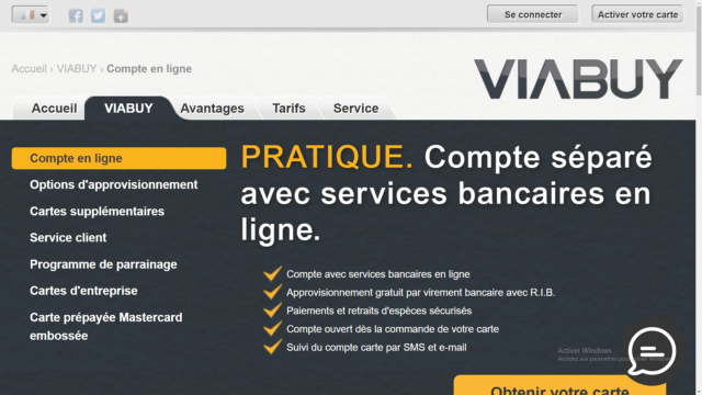 Tout se fait par Internet : Viabuy ne dispose pas de points de vente physiques, comme d’autres prestataires similaires, comme par exemple le compte nickel.